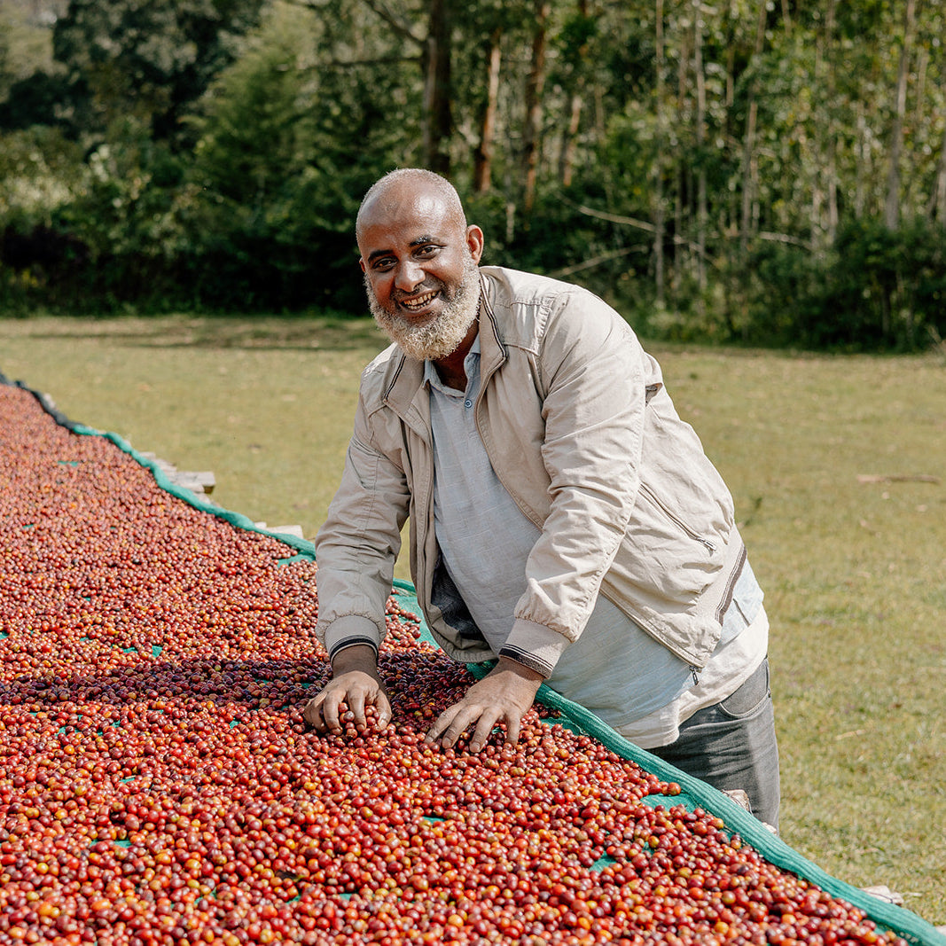 Our Christmas Coffee naturally processed lot from Ephtah Coffee, sourced from smallholders in Yirgacheffe and dried 12–15 days on raised beds. Grown at 1800–2000m among native heirloom varieties and shaded by Enset trees, it offers rich sweetness, balance, and a syrupy body. Expect sweet amaretto, floral clementine, and warming mulled-spice notes. A comforting, festive coffee that highlights Ethiopia’s deep coffee heritage.